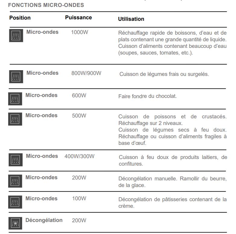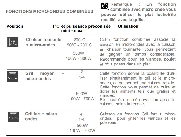 - 4 mode de cuisson proposés : Micro-onde, micro-onde+grill, Grill, Chaleur tournante